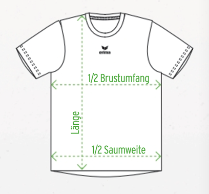 Unsicher bei der Größe? Wir haben von ERIMA detaillierte Maßangaben in cm erhalten. Das "Teamsport T-Shirt" von ERIMA entspricht dem "T-Shirt" im Teamstolz-Onlineshop ohne weitere Zusatzangaben im Namen wie "Polo" oder "Performance".